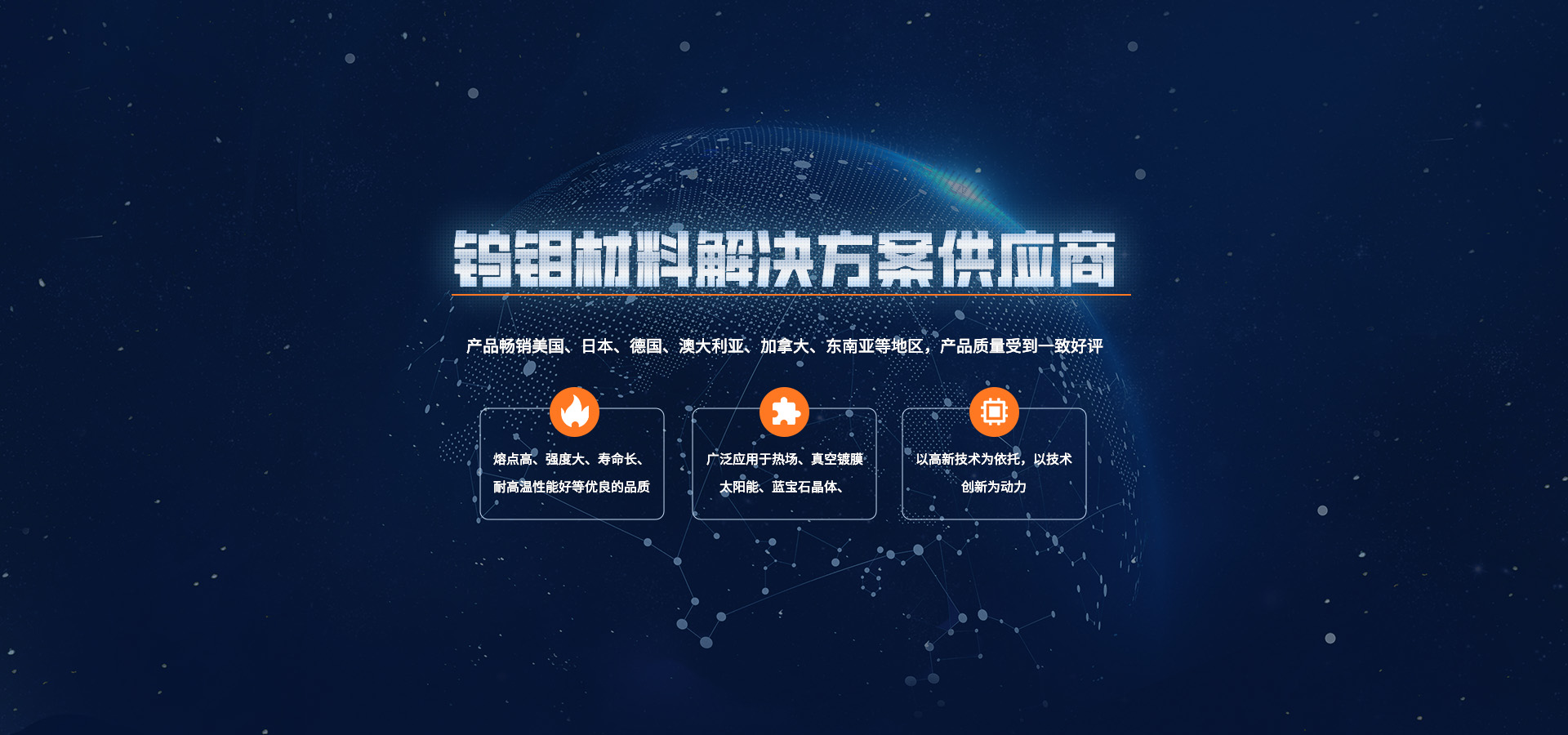 洛陽科神鎢鉬科技有限公司成立于貳零壹柒年陸月,位于洛陽市洛新產(chǎn)業(yè)集聚區(qū)東大科技產(chǎn)業(yè)園W2-4號,現(xiàn)已發(fā)展成為行業(yè)領(lǐng)***先的鎢鉬材料解決方案供應商。本公司下屬的洛陽聚晶鎢鉬科技有限公司東大鎢鉬加工廠是專**業(yè)生產(chǎn)鎢鉬及其合金制品的專**業(yè)制造工廠。所生產(chǎn)的產(chǎn)品以其熔點高、強度大、壽命長、耐高溫性能好等優(yōu)良的品質(zhì)深受國內(nèi)外用戶青睞。本公司生產(chǎn)的“聚晶”牌鎢鉬制品廣泛應用于熱場、真空鍍膜、太陽能、藍寶石晶體、光電子、半導體、特種陶瓷、光源照明、機械部件、玻璃制造、玻璃纖維,耐火纖維,稀土冶金、工業(yè)窯爐等諸多領(lǐng)域。其中,鉬板電極、鉬螺栓、鉬彎條專**業(yè)用于玻璃纖維爐用加熱電極材料;鎢合金棒電極、鉬棒電極、鉬流口、鎢(鉬)板、鎢(鉬)捅針專**業(yè)用于硅酸鋁纖維爐、玻璃電熔窯爐用加熱電極材料;鉬基鎢靶專**業(yè)用于CTX射線管和旋轉(zhuǎn)陽極X射線管;鎢棒、(鎢)鉬坩堝專**業(yè)用于稀土冶金行業(yè);銅鎢合金、碳化鎢銅專**業(yè)用于中、高壓開關(guān)管電觸頭材料;鎢(鉬)坩堝、鎢(鉬)隔熱屏、鎢(鉬)部件專**業(yè)用于真空爐、藍寶石晶體生長爐加熱室;本公司所生產(chǎn)的“聚晶”牌鎢鉬制品以其技術(shù)含量高、耐高溫性能好、電性能優(yōu)良、壽命長等特點,被越來越多的國內(nèi)外企事業(yè)單位,研究機構(gòu)所采用。產(chǎn)品暢銷美國、日本、德國、澳大利亞、加拿大、東南亞等地區(qū),產(chǎn)品質(zhì)量受到一致好評。本企業(yè)已通過ISO9001:2008質(zhì)量管理體系認證,真正以高新**技術(shù)為依托,以技術(shù)創(chuàng)新為動力,以質(zhì)量過硬為宗旨,以誠實守信為信條。竭誠為國內(nèi)外新老客戶提供優(yōu)**質(zhì)的產(chǎn)品、良好的服務。我們熱忱歡迎您的惠顧,歡迎您的合作! 服務理念:誠信溝通零**距離,恭謙服務無極**限。經(jīng)營理念:以人才和技術(shù)為基礎(chǔ),創(chuàng)造出*高品質(zhì)的產(chǎn)品和服務,為人類社會的發(fā)展做出貢獻。品質(zhì)保證:材料,確保*高的性能。我們的傳統(tǒng):創(chuàng)新。創(chuàng)造的技術(shù),新的視角。